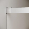 Auf Maß gefertigte Seitenwand ohne Wandprofil, mit edler verchromter Wandbefestigung.